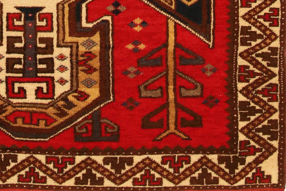 A striking 20th century Sevan rug featuring a bold central star medallion set within rich reds and earthy browns, framed by strong geometric borders that reflect Armenian weaving tradition.